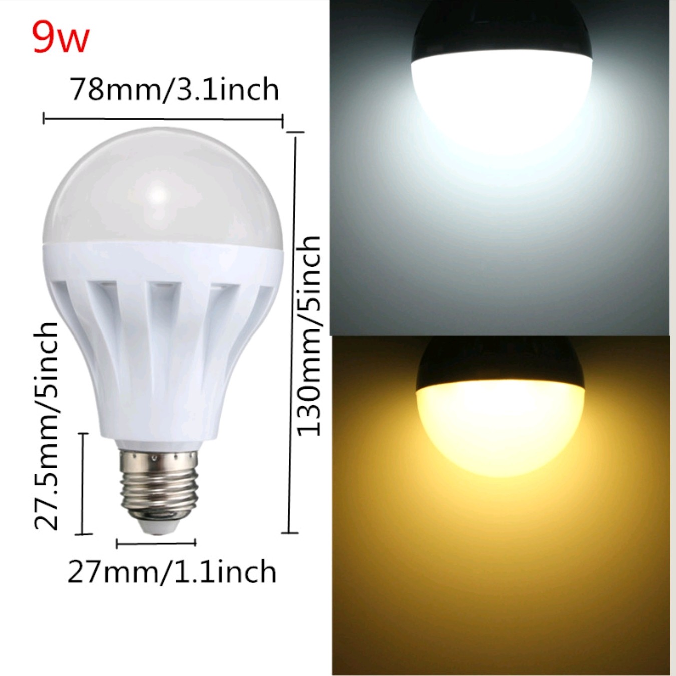 Stor 9w LED pærer med stor fatning (E27) quantity
